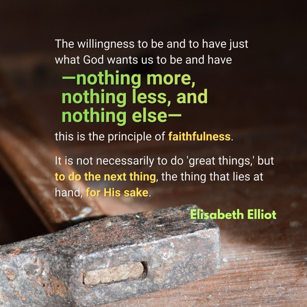 - Where is God calling me to be faithful, especially in the small or unseen things?